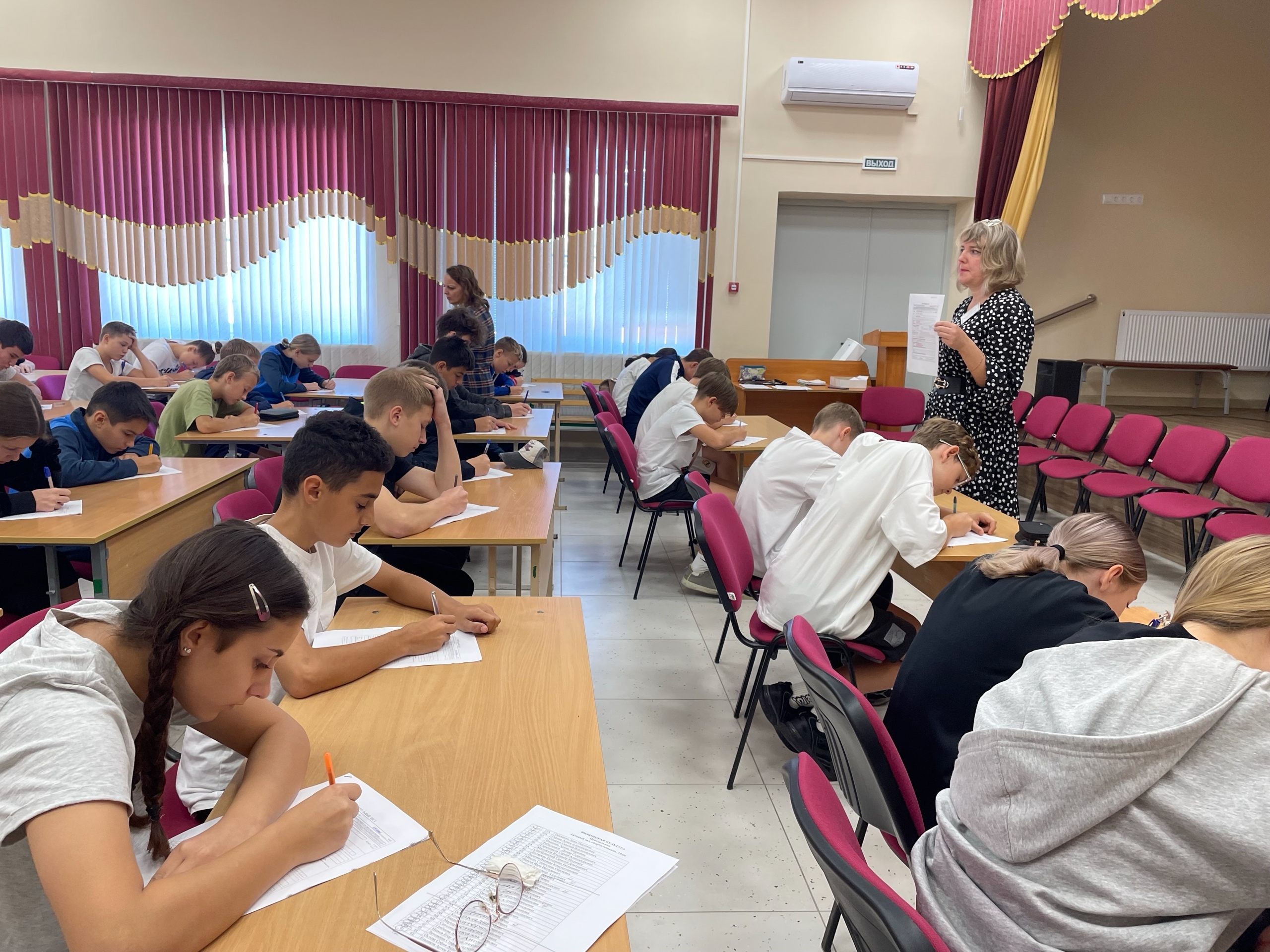 Теоретическая часть прошла в актовом зале гимназии.